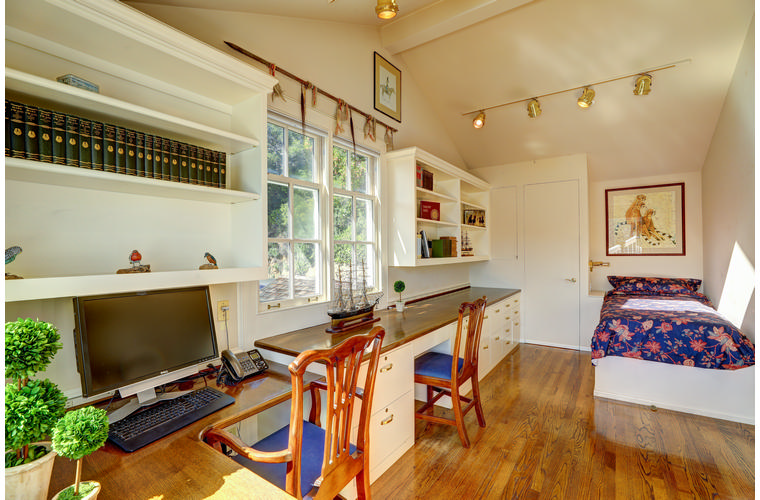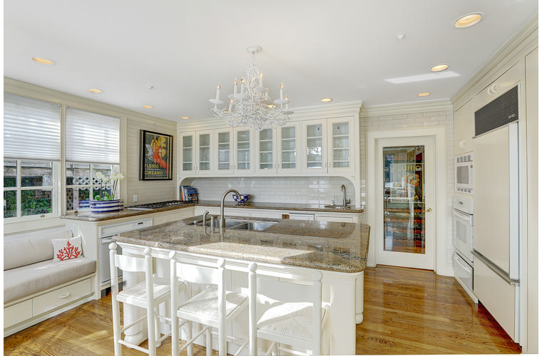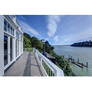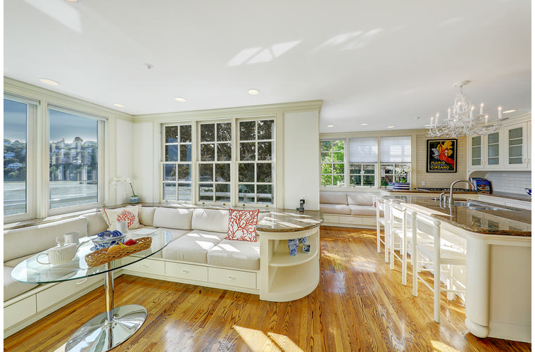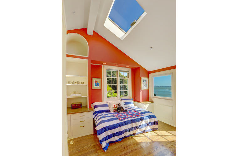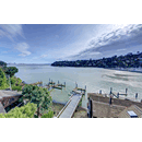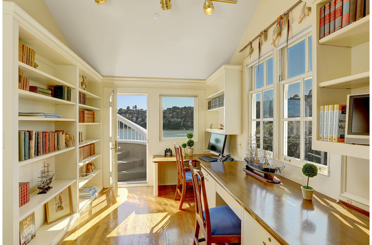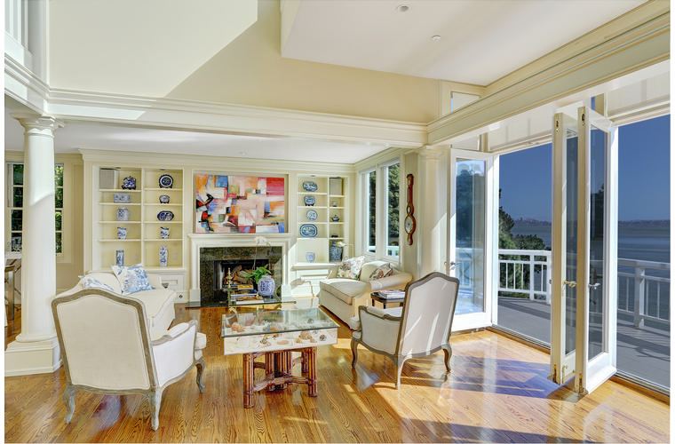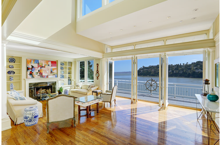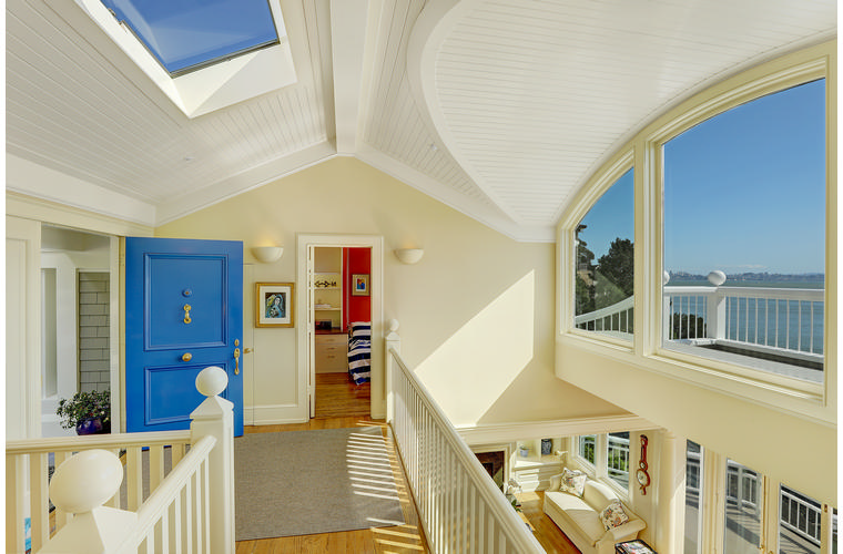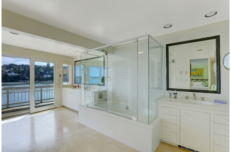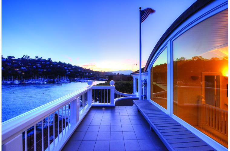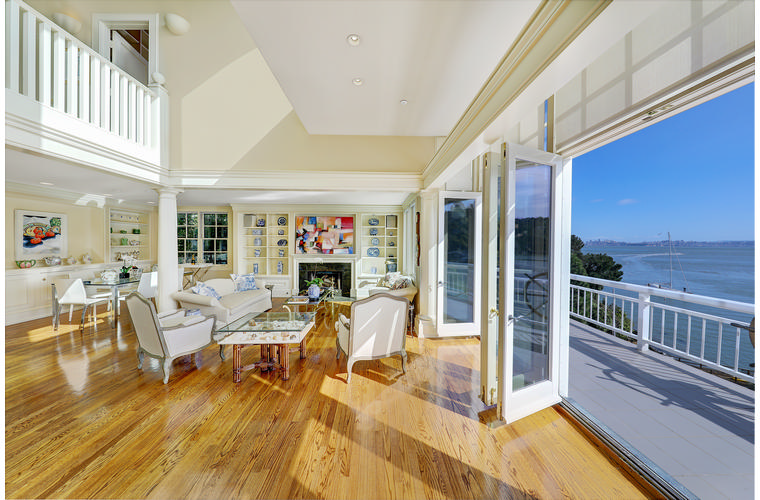 PRIME WATERFRONT HOME WITH 71 Bellevue Ave, Belvedere | $5,995,000 Immaculate Corinthian Island waterfront home at 3,325 square foot featuring 5 bedroom, 5.5 baths with fabulous boat dock, lift & a beach house, all with spectacular views of Belvedere Cove, San Francisco Yacht Club harbor, Bay and SF skyline. Sunny and protected location from wind and fog and short walk to two world-class yacht clubs & Downtown Tiburon. Entry Level Entering the pristine nautical blue lacquer front door complete with brass fixtures, this gracious home treats your eyes with the breathtaking views through the expansive windows framed by the distinctive high arched ceiling. Also on this floor is an office with built-in desk and an extra long twin bed and the library/5th bedroom with en suite bathroom featuring hand painted wall paper by artist Victoria Stratton. Both rooms have hardwood floors and open out to a view deck. Main Level Enjoy the panoramic views of Belvedere Cove, yacht harbor and San Francisco while entertaining in the spacious high ceiling living/dining room with a wall of doors leading out to a spacious deck. Hardwood floors and crown moulding throughout the room as well as a fireplace, built in shelves, and a powder room. Adjacent to the living/dining room is the sparkling eat-in kitchen surrounded by view windows, featuring marble counters and center island, two ovens, Sub-zero refrigerator, Bosch stove top, stainless steel sink, trash compactor, a desk, two built-in seating areas and access to a view deck. Behind the kitchen is a large walk-in pantry that spans the width of the home and provides an abundance of built-in shelving, storage cabinets, a second refrigerator, wine storage, and an utility sink. Lower Level The luxurious master suite with French doors leading out to a view deck. There are two closets with built ins, one walk in, window coverings and a mirrored walls that reflect the water views. The marble master bath has his and hers sinks, a deep jetted tub with overhead surround shower. The second bedroom, currently being used as a gym opens onto a view deck, has a mirrored closet with built ins, en-suite bath with a deep tub and overhead shower. The laundry room off the hallway has a Miele washer/dryer and additional storage. Guests Quarters Level The guests suite accessed through its own private entrance is complete with en suite bath with shower stall, tile counter/floors and shuttered windows. Beach House and Boat Dock Accessed by stairs and a hillavator, there is the beach house and boat dock. The beach house has a pitched high ceiling with exposed beams, hardwood floors, a kitchen, a fireplace, full bath and a murphy bed. The spacious deck leading to the private dock was recently upgraded with trex. There is a heavy duty boat lift and a floating dock with easy access to San Francisco Yacht Club harbor and the Bay.